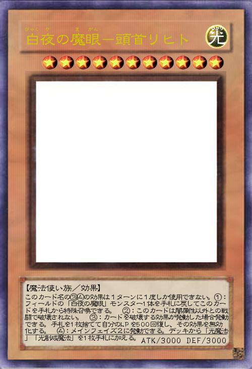 | このカード名の③④の効果は1ターンに1度しか使用できない。①:フィールドの「白夜の魔眼」モンスター1体を手札に戻してこのカードを手札から特殊召喚できる。 ②:このカードは闇属性以外との戦闘で破壊されない。 ③:カードを破壊する効果が発動した場合発動できる。手札を1枚捨てて自分のLPを500回復し、その効果を無効化する。 ④:メインフェイズ2に発動できる。デッキから「光魔法」「光創成魔法」を1枚手札に加える。 | |||