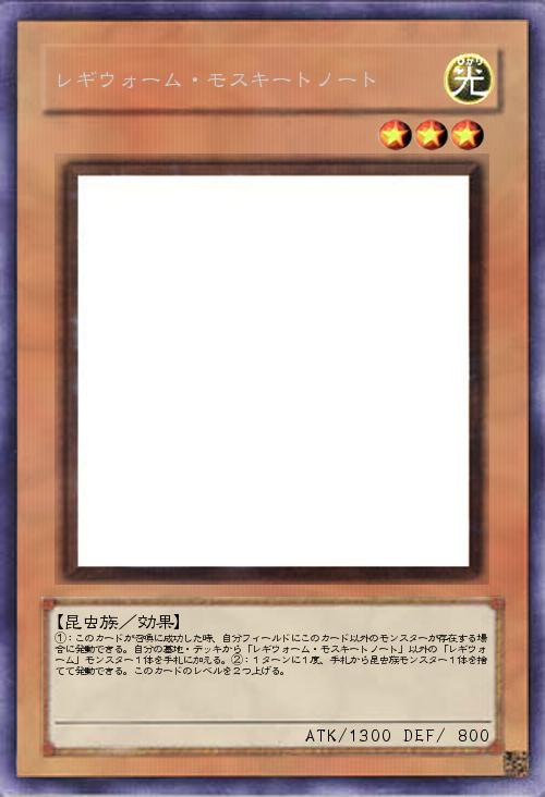 | ①:このカードが召喚に成功した時、自分フィールドにこのカード以外のモンスターが存在する場合に発動できる。自分の墓地・デッキから「レギウォーム・モスキートノート」以外の「レギウォーム」モンスター1体を手札に加える。②:1ターンに1度、手札から昆虫族モンスター1体を捨てて発動できる。このカードのレベルを2つ上げる。 | |||