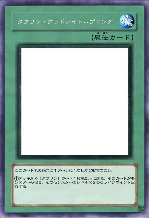 | このカード名の効果は1ターンに1度しか発動できない。 ①デッキから「ダブリン」カード1枚を墓地に送る。そのカードがモンスターの場合、そのモンスターのレベル×300ライフポイント回復する。 | |||
