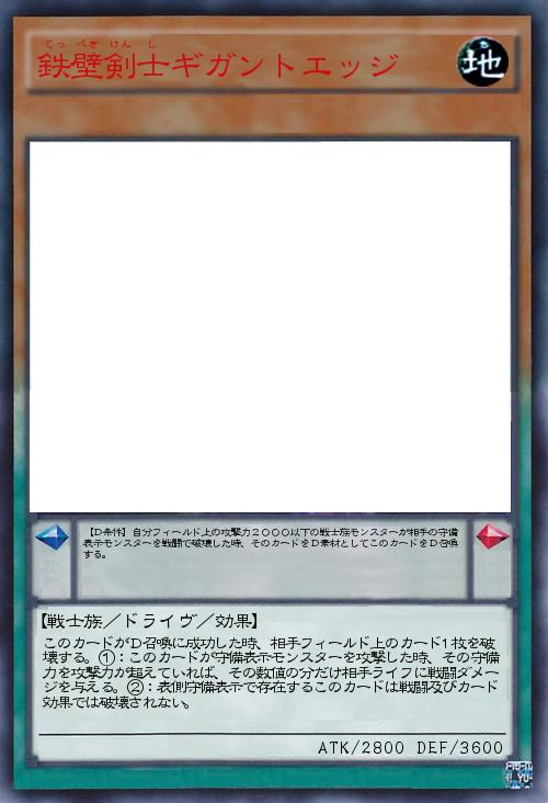 | 【D条件】自分フィールド上の攻撃力2000以下の戦士族モンスターが相手の守備表示モンスターを戦闘で破壊した時、そのカードをD素材としてこのカードをD召喚する。 | |||