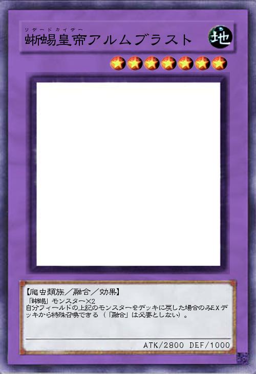 | 「蜥蜴」モンスター×2 自分フィールドの上記のモンスターをデッキに戻した場合のみEXデッキから特殊召喚できる(「融合」は必要としない)。 | |||