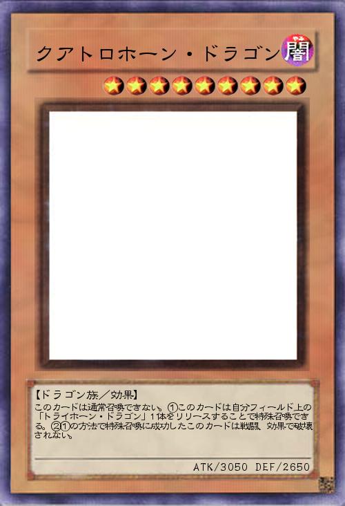 | このカードは通常召喚できない。①このカードは自分フィールド上の「トライホーン・ドラゴン」1体をリリースすることで特殊召喚できる。②①の方法で特殊召喚に成功したこのカードは戦闘、効果で破壊されない。 | |||