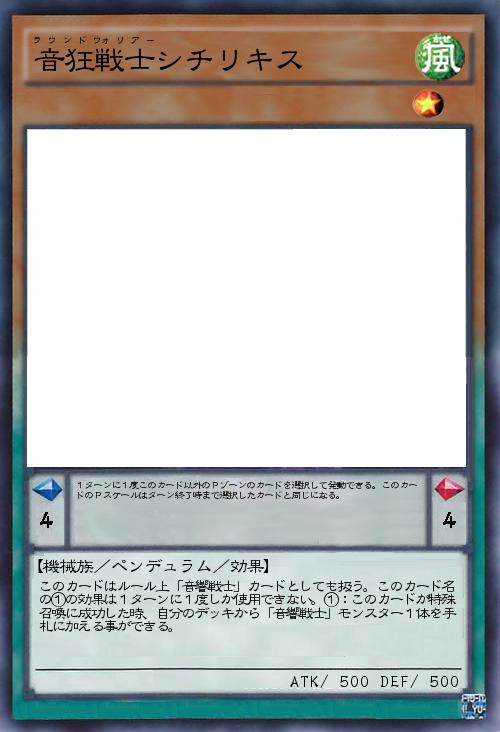 | このカードはルール上「音響戦士」カードとしても扱う。このカード名の①の効果は1ターンに1度しか使用できない。①:このカードが特殊召喚に成功した時、自分のデッキから「音響戦士」モンスター1体を手札に加える事ができる。 | |||