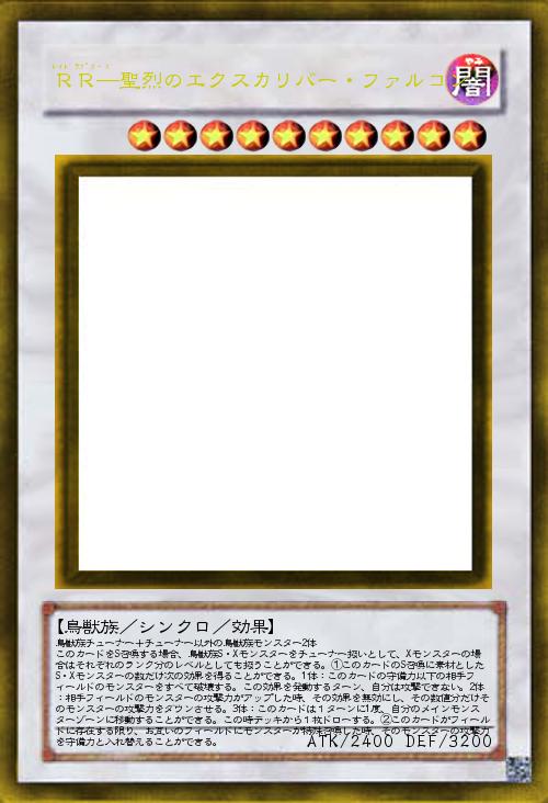 「黒咲「RR-ライズ・ファルコンとRR-フォース・ストリクスに」クロウ「A BF雨隠れのサヨをチューニング!おいしいとこもってかれるのは癪だが、受け取りやがれ、黒咲!」黒咲「礼はいわんぞ。鮮烈なるハヤブサ、絶望の淵に輝く希望の翼翻し」クロウ「迫り来る闇を叩き斬れ!シンクロ召喚!!」黒咲「レベル10・RR」クロウ「聖烈の」二人「エクスカリバー・ファルコン!!!」