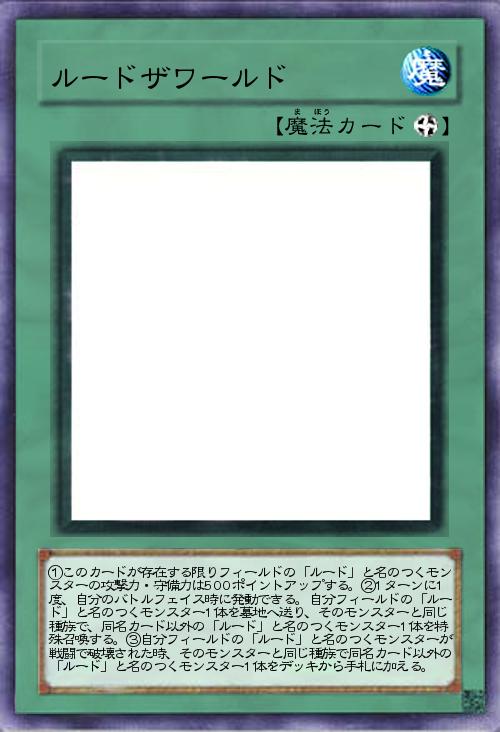 | ①このカードが存在する限りフィールドの「ルード」と名のつくモンスターの攻撃力・守備力は500ポイントアップする。②1ターンに1度、自分のバトルフェイス時に発動できる。自分フィールドの「ルード」と名のつくモンスター1体を墓地へ送り、そのモンスターと同じ種族で、同名カード以外の「ルード」と名のつくモンスター1体を特殊召喚する。③自分フィールドの「ルード」と名のつくモンスターが戦闘で破壊された時、そのモンスターと同じ種族で同名カード以外の「ルード」と名のつくモンスター1体をデッキから手札に加える。 | |||
