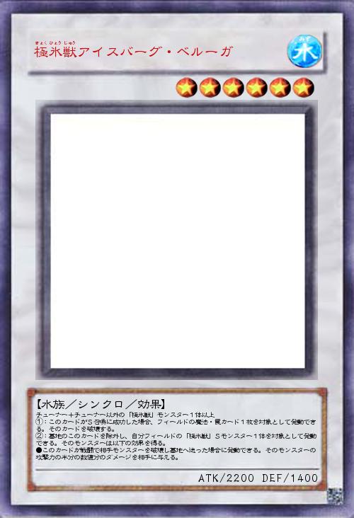 | チューナー+チューナー以外の「極氷獣」モンスター1体以上 ①:このカードがS召喚に成功した場合、フィールドの魔法・罠カード1枚を対象として発動できる。そのカードを破壊する。 ②:墓地のこのカードを除外し、自分フィールドの「極氷獣」Sモンスター1体を対象として発動できる。そのモンスターは以下の効果を得る。 ●このカードが戦闘で相手モンスターを破壊し墓地へ送った場合に発動できる。そのモンスターの攻撃力の半分の数値分のダメージを相手に与える。 | |||