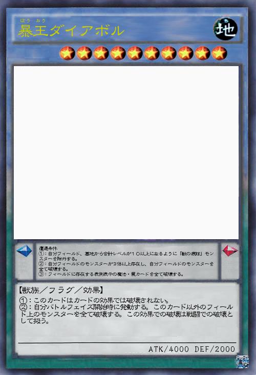 | ①:このカードはカードの効果では破壊されない。 ②:自分バトルフェイズ開始時に発動する。このカード以外のフィールド上のモンスターを全て破壊する。この効果での破壊は戦闘での破壊として扱う。 | |||