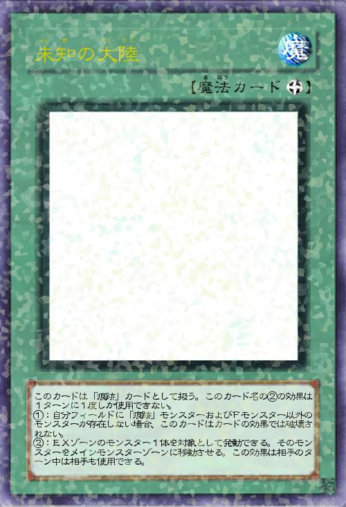 痕跡を残すのに最適な大陸。その大陸には未知のモンスターが数多く住むことから汎用枠としても採用でき、地の利を利用してEXゾーンを開けることができるものの、未知のモンスターを出してくる相手も利用できるデメリットつき。ただしこちらも条件が揃えばモチーフ元らしく大型Fモンスターを2体以上並べることも可能。
