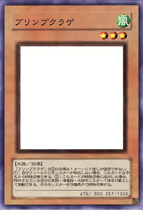 | 「ブリンプクラゲ」の②の効果は1ターンに1度しか使用できない。①:自分フィールドにモンスターが存在しない場合、このカードは手札から特殊召喚できる。②:このカードが特殊召喚に成功した場合、除外されている自分の魚族・海竜族・水族モンスター1体を対象として発動できる。そのモンスターを守備表示で特殊召喚する。 | |||