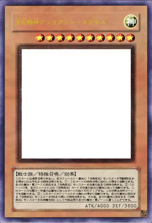 「7つの召喚宝石を束ねる神。宝玉獣で例えるならレインボードラゴンと同じポジションです。②の効果をレインボードラゴンに似せてみました。除去されても③の効果があり、立て直しは簡単です。