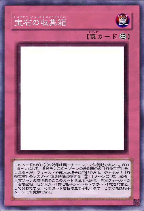 「宝玉の集結っぽい感じの永続罠。②の効果をフリーチェーンにしました。結果、相手ターンに特殊召喚した召喚宝石を、相手のカードをバウンスしつつ魔法・罠ゾーンに置けるというコンボが…」(2018-03-24 17:40)