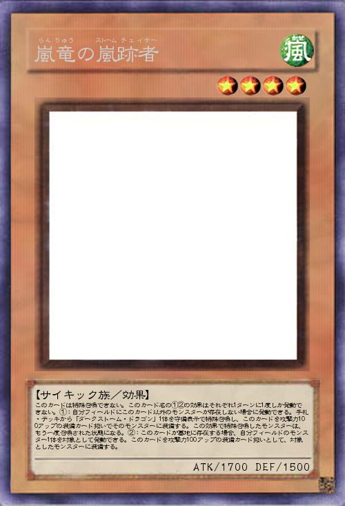 | このカードは特殊召喚できない。このカード名の①②の効果はそれぞれ1ターンに1度しか発動できない。①:自分フィールドにこのカード以外のモンスターが存在しない場合に発動できる。手札・デッキから「ダークストーム・ドラゴン」1体を守備表示で特殊召喚し、このカードを攻撃力100アップの装備カード扱いでそのモンスターに装備する。この効果で特殊召喚したモンスターは、もう一度召喚された状態になる。②:このカードが墓地に存在する場合、自分フィールドのモンスター1体を対象として発動できる。このカードを攻撃力100アップの装備カード扱いとして、対象としたモンスターに装備する。 | |||
