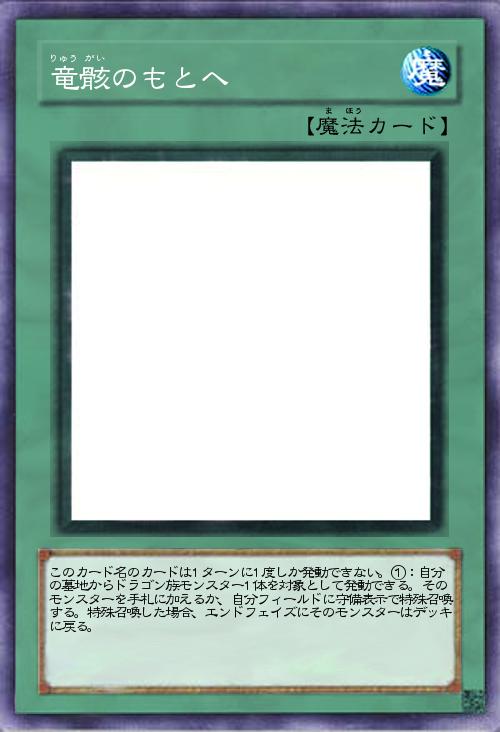 | このカード名のカードは1ターンに1度しか発動できない。①:自分の墓地からドラゴン族モンスター1体を対象として発動できる。そのモンスターを手札に加えるか、自分フィールドに守備表示で特殊召喚する。特殊召喚した場合、エンドフェイズにそのモンスターはデッキに戻る。 | |||