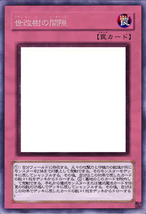 | ①:自分フィールドに存在する、元々の攻撃力と守備力の数値が同じモンスターを2体まで対象として発動できる。そのモンスターをデッキに戻してシャッフルする。その後、自分はこの効果で戻したカードの数+1枚をデッキからドローする。②:墓地のこのカードを除外し、て発動できる。手札から儀式モンスターまたは儀式魔法カードを任意の枚数だけ選んでデッキに戻してシャッフルする。その後、自分はこの効果でデッキに戻したカードの数+1枚をデッキからドローする。 | |||
