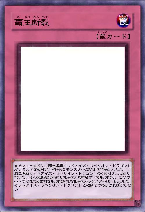 | 自分フィールドに「覇王黒竜オッドアイズ・リベリオン・ドラゴン」がいるとき発動可能。相手がXモンスターの効果を発動したとき、「覇王黒竜オッドアイズ・リベリオン・ドラゴン」のX素材を二つ取り除いて、その発動を無効にし相手のX素材をすべて取り除く。このカードの効果でX素材を取り除かれた相手のXモンスターは「覇王黒竜オッドアイズ・リベリオン・ドラゴン」と戦闘を行わなければならない。 | |||