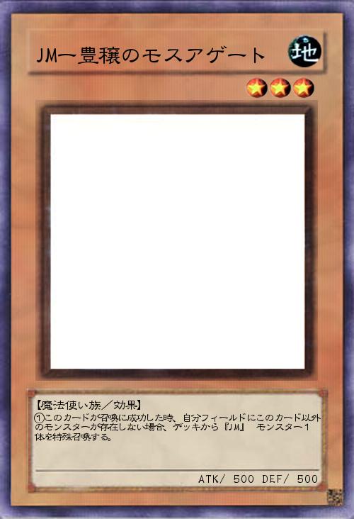 | ①このカードが召喚に成功した時、自分フィールドにこのカード以外のモンスターが存在しない場合、デッキから『JM』 モンスター1体を特殊召喚する。 | |||