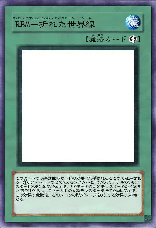 | このカードの効果は他のカードの効果に影響されることなく適用される。①:フィールドの全てのXモンスターと自分のEXデッキのXモンスター1体を対象に発動する。EXデッキの対象モンスターをX召喚扱いで特殊召喚し、フィールドの対象モンスターを全てX素材にする。この効果の発動後、このターンの間ダメージを0にする効果は無効になる。 | |||