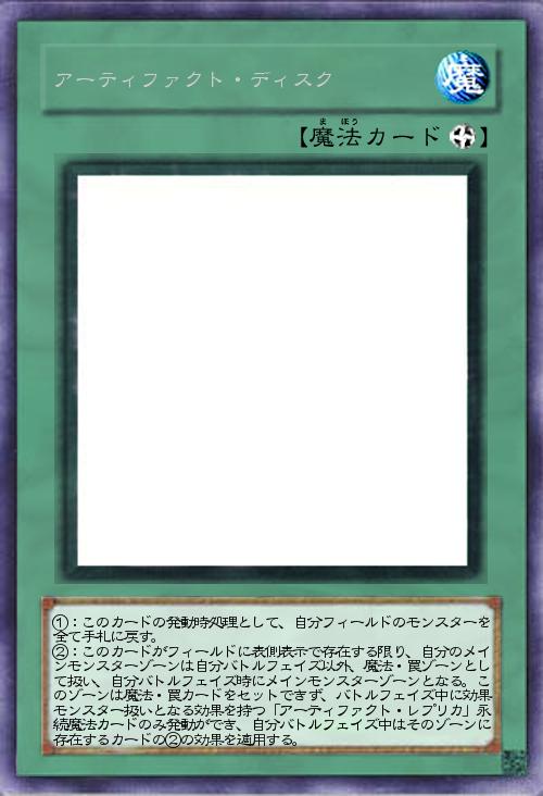| ①:このカードの発動時処理として、自分フィールドのモンスターを全て手札に戻す。 ②:このカードがフィールドに表側表示で存在する限り、自分のメインモンスターゾーンは自分バトルフェイズ以外、魔法・罠ゾーンとして扱い、自分バトルフェイズ時にメインモンスターゾーンとなる。このゾーンは魔法・罠カードをセットできず、バトルフェイズ中に効果モンスター扱いとなる効果を持つ「アーティファクト・レプリカ」永続魔法カードのみ発動ができ、自分バトルフェイズ中はそのゾーンに存在するカードの②の効果を適用する。 | |||