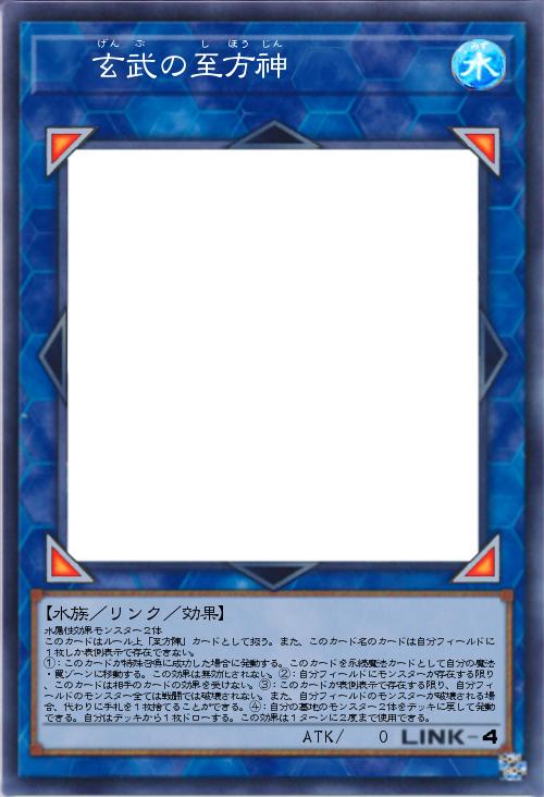 | 水属性効果モンスター2体 このカードはルール上「至方陣」カードとして扱う。また、このカード名のカードは自分フィールドに1枚しか表側表示で存在できない。 ①:このカードが特殊召喚に成功した場合に発動する。このカードを永続魔法カードとして自分の魔法・罠ゾーンに移動する。この効果は無効化されない。②:自分フィールドにモンスターが存在する限り、このカードは相手のカードの効果を受けない。③:このカードが表側表示で存在する限り、自分フィールドのモンスター全ては戦闘では破壊されない。また、自分フィールドのモンスターが破壊される場合、代わりに手札を1枚捨てることができる。④:自分の墓地のモンスター2体をデッキに戻して発動できる。自分はデッキから1枚ドローする。この効果は1ターンに2度まで使用できる。 | |||