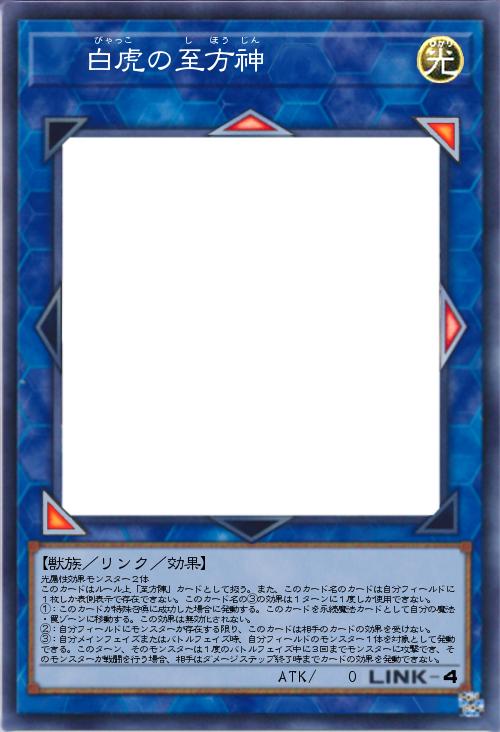 | 光属性効果モンスター2体 このカードはルール上「至方陣」カードとして扱う。また、このカード名のカードは自分フィールドに1枚しか表側表示で存在できない。このカード名の③の効果は1ターンに1度しか使用できない。 ①:このカードが特殊召喚に成功した場合に発動する。このカードを永続魔法カードとして自分の魔法・罠ゾーンに移動する。この効果は無効化されない。 ②:自分フィールドにモンスターが存在する限り、このカードは相手のカードの効果を受けない。 ③:自分メインフェイズまたはバトルフェイズ時、自分フィールドのモンスター1体を対象として発動できる。このターン、そのモンスターは1度のバトルフェイズ中に3回までモンスターに攻撃でき、そのモンスターが戦闘を行う場合、相手はダメージステップ終了時までカードの効果を発動できない。 | |||