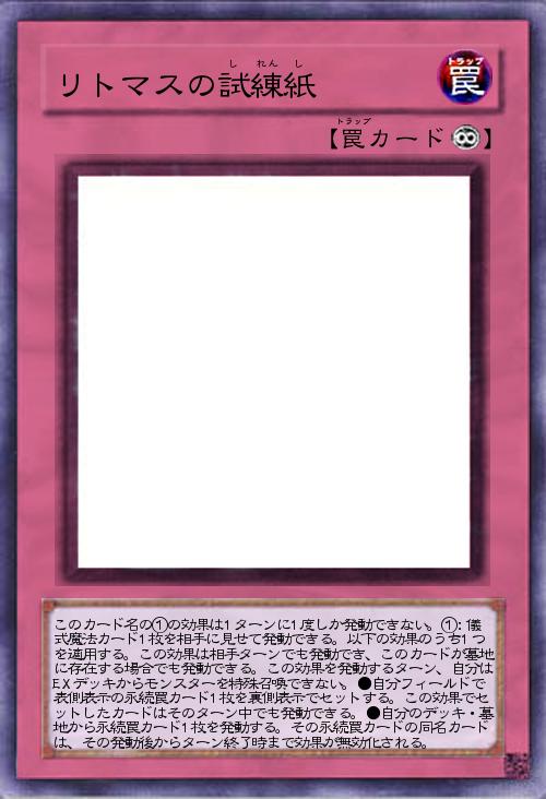 「ついに「リトマスの死の剣士」がOCG化したので、少々遅くなりましたがサポートカードを作成しました。アニメ三沢のカードを「リトマス」で総カテゴリ化するのもアリだと思います。