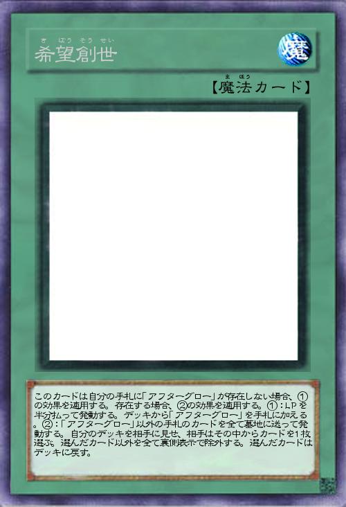 | このカードは自分の手札に「アフターグロー」が存在しない場合、①の効果を適用する。存在する場合、②の効果を適用する。①:LPを半分払って発動する。デッキから「アフターグロー」を手札に加える。②:「アフターグロー」以外の手札のカードを全て墓地に送って発動する。自分のデッキを相手に見せ、相手はその中からカードを1枚選ぶ。選んだカード以外を全て裏側表示で除外する。選んだカードはデッキに戻す。 | |||