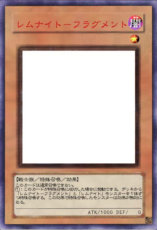 | このカードは通常召喚できない。 ①:このカードが特殊召喚に成功した場合に発動できる。デッキから「レムナイト-フラグメント」と「レムナイト」モンスターを1体ずつ特殊召喚する。この効果で特殊召喚したモンスターは効果が無効になる。 | |||