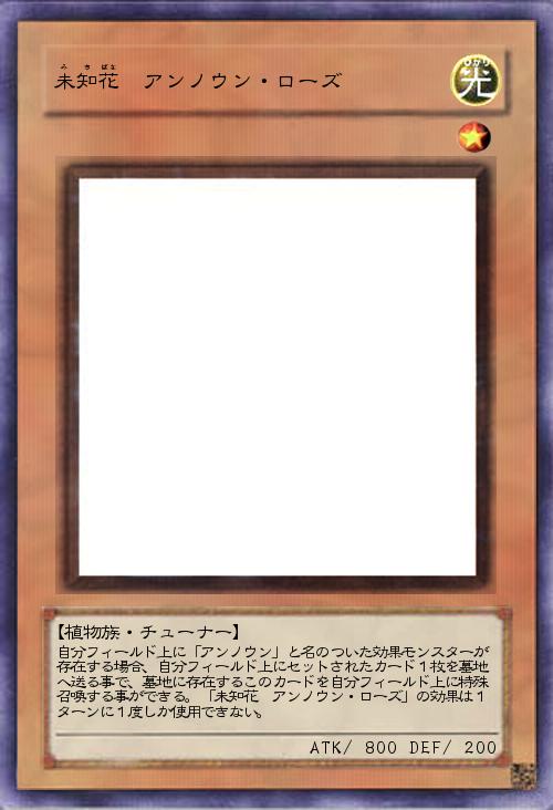自分フィールド上に「アンノウン」と名のついた効果モンスターが存在する場合、自分フィールド上にセットされたカード1枚を墓地へ送る事で、墓地に存在するこのカードを自分フィールド上に特殊召喚する事ができる。「未知花 アンノウン・ローズ」の効果は1ターンに1度しか使用できない。 |