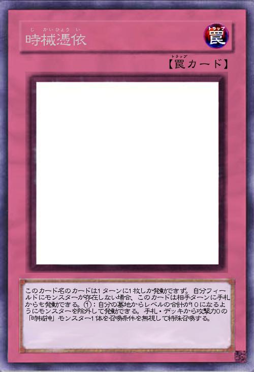 | このカード名のカードは1ターンに1枚しか発動できず。自分フィールドにモンスターが存在しない場合、このカードは相手ターンに手札からも発動できる。①:自分の墓地からレベルの合計が10になるようにモンスターを除外して発動できる。手札・デッキから攻撃力0の「時械神」モンスター1体を召喚条件を無視して特殊召喚する。 | |||
