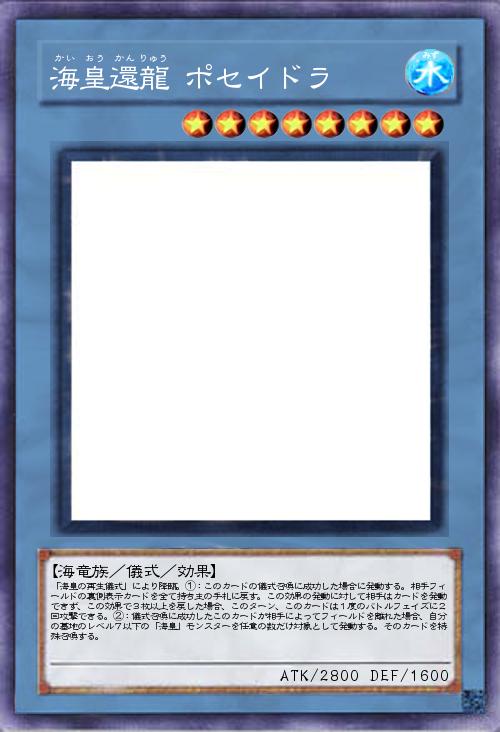 海皇の再生儀式により降臨し、儀式召喚成功時に相手の裏側カード全てを持ち主の手札にバウンスすることができるとSポ先輩とは逆の効果。さらに、この効果で3枚以上のカードをバウンスすることができれば2回の攻撃可能となるため、ダメージ量は期待できますね!さらに儀式召喚に成功した自身が、相手によってフィールドを離れれば墓地からレベル7以下の海皇を任意の数蘇生することができると非常に強力な効果!相手への除去対策もバッチリ!状況によってはより恐ろしい事に…。もちろん元のポセイドラも問題なく呼び出せるので、元祖ポセイドラにも活躍してもらいましょう。