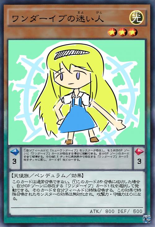 早速過労死枠認定を受けている迷い人さんですが、なんと通常召喚が行えないとの事!P召喚に成功すればPゾーンに存在するワンダーイブカードを対象に、フィールドに呼び出せるというもの。この効果でSSした場合は効果無効+ステータスが0になるのでこの2体で融合しろということですね。発動のトリガーがP召喚なので、エレクトラムなどのLへとつなげたとしてもそこからの展開が進まなさそうな感じもするので、素直に融合するのが吉でしょうね。