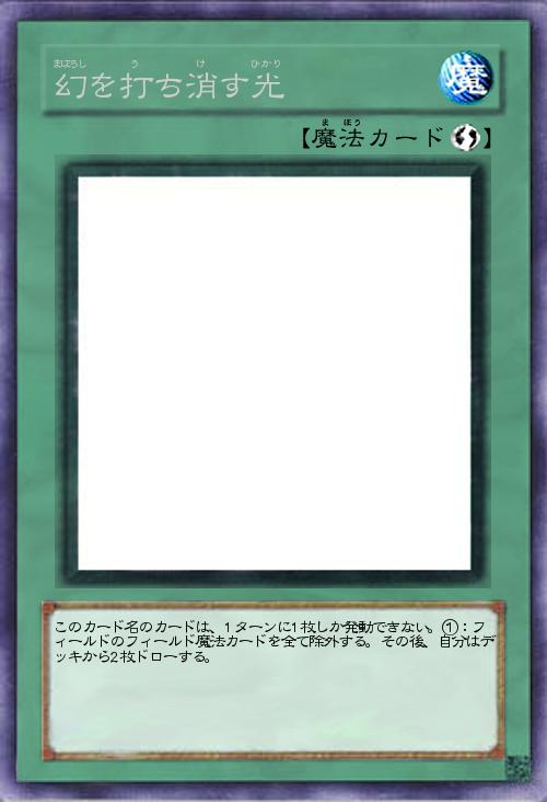 | このカード名のカードは、1ターンに1枚しか発動できない。①:フィールドのフィールド魔法カードを全て除外する。その後、自分はデッキから2枚ドローする。 | |||