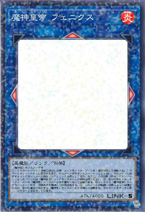 「あらたに魔神カテゴリです。ラスボス感溢れるカードにしました。名前はフェニックスからとっており、共通効果として、「EXモンスターゾーン化」、「魔神皇帝」、「戦闘・効果破壊耐性」があります。時械神に似ている感じです。」(2018-04-30 03:19)