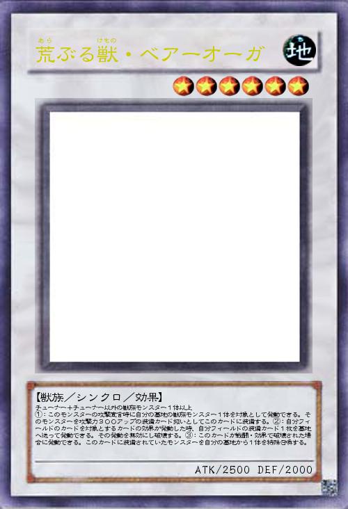 | チューナー+チューナー以外の獣族モンスター1体以上 ①:このモンスターの攻撃宣言時に自分の墓地の獣族モンスター1体を対象として発動できる。そのモンスターを攻撃力300アップの装備カード扱いとしてこのカードに装備する。②:自分フィールドのカードを対象とするカードの効果が発動した時、自分フィールドの装備カード1枚を墓地へ送って発動できる。その発動を無効にし破壊する。③:このカードが戦闘・効果で破壊された場合に発動できる。このカードに装備されていたモンスターを自分の墓地から1体を特殊召喚する。 | |||