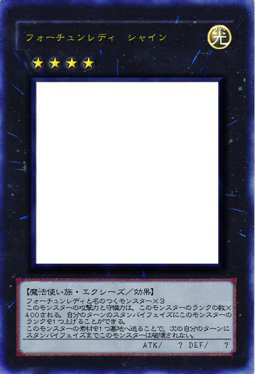 フォーチュンレディと名のつくモンスター×3 このモンスターの攻撃力と守備力は、このモンスターのランクの数×400される。自分のターンのスタンバイフェイズにこのモンスターのランクを1つ上げることができる。 このモンスターの素材を1つ墓地へ送ることで、次の自分のターンにスタンバイフェイズまでこのモンスターは破壊されない。 |