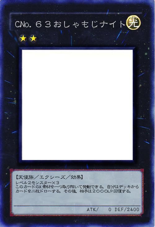 「おしゃもじソルジャーのCNo.版です。ドロー枚数とライフの回復数値が増えた成金ゴブリンのような効果です。」(2018-05-05 16:28)