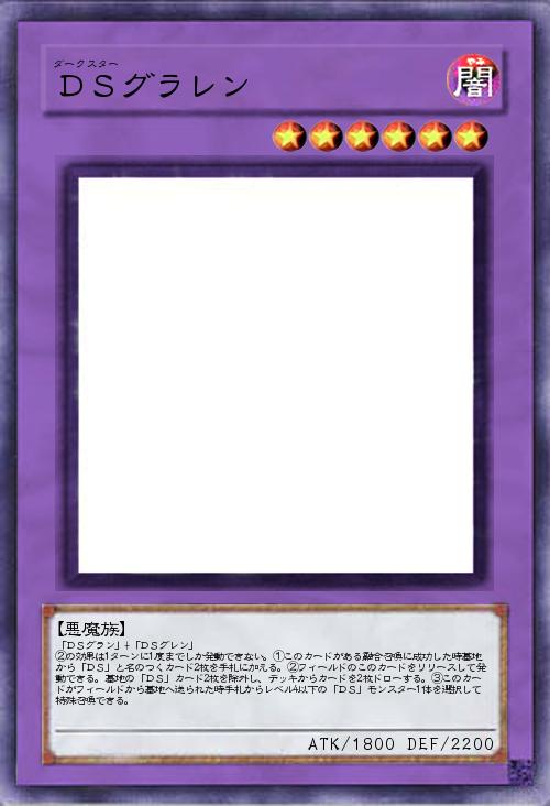 | 「DSグラン」+「DSグレン」 ②の効果は1ターンに1度までしか発動できない。①このカードがある融合召喚に成功した時墓地から「DS」と名のつくカード2枚を手札に加える。②フィールドのこのカードをリリースして発動できる。墓地の「DS」カード2枚を除外し、デッキからカードを2枚ドローする。③このカードがフィールドから墓地へ送られた時手札からレベル4以下の「DS」モンスター1体を選択して特殊召喚できる。 | |||