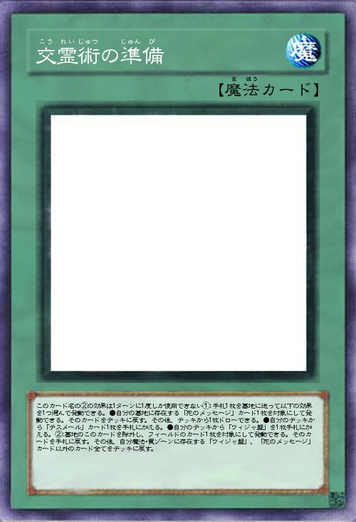 | このカード名の②の効果は1ターンに1度しか使用できない①:手札1枚を墓地に送って以下の効果を1つ選んで発動できる。●自分の墓地に存在する「死のメッセージ」カード1枚を対象にして発動できる。そのカードをデッキに戻す。その後、デッキから1枚ドローできる。●自分のデッキから「デスメール」カード1枚を手札に加える。●自分のデッキから「ウィジャ盤」を1枚手札に加える。②:墓地のこのカードを除外し、フィールドのカード1枚を対象にして発動できる。そのカードを手札に戻す。その後、自分魔法・罠ゾーンに存在する「ウィジャ盤」、「死のメッセージ」カード以外のカード全てをデッキに戻す。 | |||
