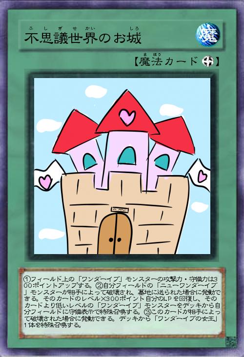 打点上げ、ニューワンダーイブがやられた時にバックアップと安定した盤面を維持できるので、ニュー女王様を置いておけばこのお城を除去しないとどんどん出てきてしまう。かといってお城を破壊すると女王様が御怒りになって弱体化効果を適用させてしまう・・・総じて攻守そろった良フィールド魔法。