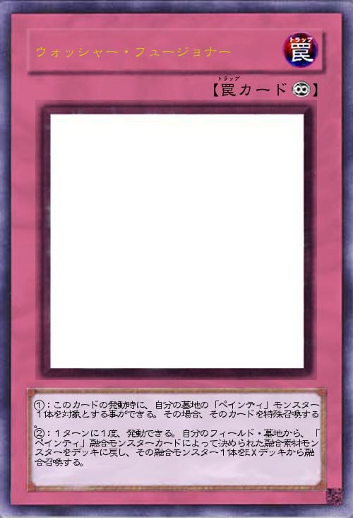 | ①:このカードの発動時に、自分の墓地の「ペインティ」モンスター1体を対象とする事ができる。その場合、そのカードを特殊召喚する。 ②:1ターンに1度、発動できる。自分のフィールド・墓地から、「ペインティ」融合モンスターカードによって決められた融合素材モンスターをデッキに戻し、その融合モンスター1体をEXデッキから融合召喚する。 | |||