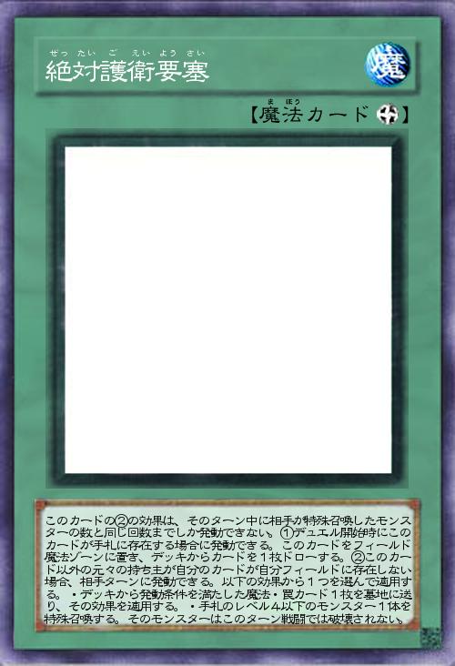 | このカードの②の効果は、そのターン中に相手が特殊召喚したモンスターの数と同じ回数までしか発動できない。①デュエル開始時にこのカードが手札に存在する場合に発動できる。このカードをフィールド魔法ゾーンに置き、デッキからカードを1枚ドローする。②このカード以外の元々の持ち主が自分のカードが自分フィールドに存在しない場合、相手ターンに発動できる。以下の効果から1つを選んで適用する。・デッキから発動条件を満たした魔法・罠カード1枚を墓地に送り、その効果を適用する。・手札のレベル4以下のモンスター1体を特殊召喚する。そのモンスターはこのターン戦闘では破壊されない。 | |||