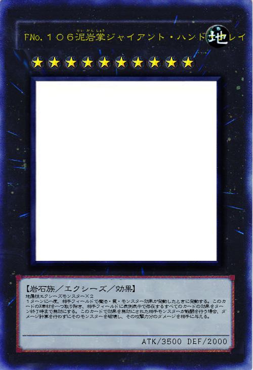 「ジャイアント・ハンドのFNo.版です。効果の無効化に加え、モンスター効果を無効にした場合はバーン効果も。」(2018-05-26 01:30)