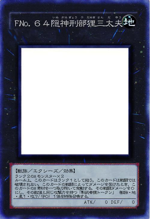 「古狸三太夫のFNo.版です。狸の妖怪と言ったら隠神刑部狸だろうと思い、この名前にしました。受けるダメージによっては高攻撃力のトークンを生成できます。」(2018-05-26 23:08)