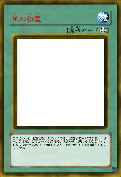 | このカードは地属性モンスターにのみ、装備する事ができる。1ターンに1度、このカードの装備モンスターの攻撃力を200ポイントダウンさせる事で、装備モンスターの守備力を500ポイントアップする。 | |||