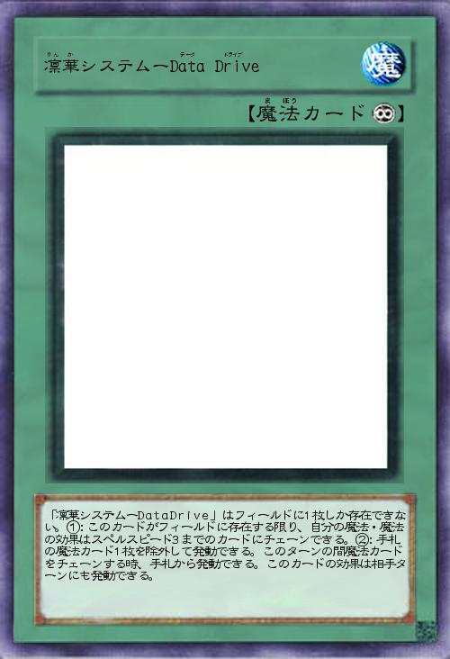 | 「凛華システムーDataDrive」はフィールドに1枚しか存在できない。①:このカードがフィールドに存在する限り、自分の魔法・魔法の効果はスペルスピード3までのカードにチェーンできる。②:手札の魔法カード1枚を除外して発動できる。このターンの間魔法カードをチェーンする時、手札から発動できる。このカードの効果は相手ターンにも発動できる。 | |||