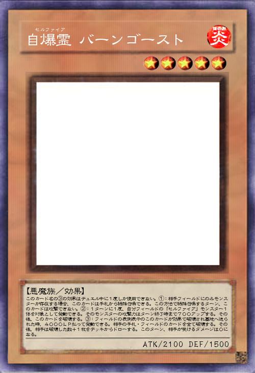 いまさらですが、それぞれカード名のセルファイアは異なってるんですね。今回は自爆お化けのバーンゴースト。バーン効果を搭載してなかったらしいこのお化け。自爆するからバーン(安直