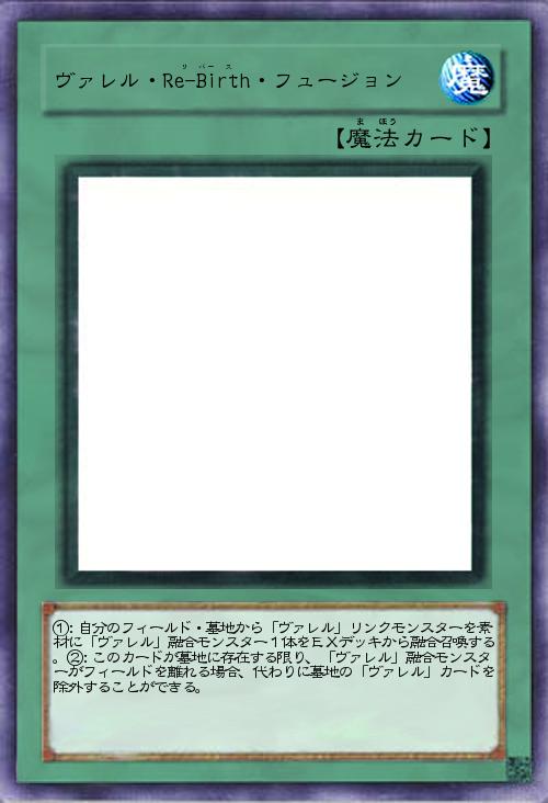 | ①:自分のフィールド・墓地から「ヴァレル」リンクモンスターを素材に「ヴァレル」融合モンスター1体をEXデッキから融合召喚する。②:このカードが墓地に存在する限り、「ヴァレル」融合モンスターがフィールドを離れる場合、代わりに墓地の「ヴァレル」カードを除外することができる。 | |||