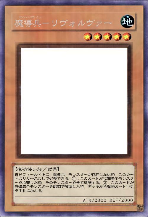 | 自分フィールド上に「魔導兵」モンスターが存在しない時、このカードはリリースなしで召喚できる。①:このカードが攻撃表示モンスターを攻撃した時、そのモンスターを全て破壊する。②:このカードが守備表示モンスターを戦闘で破壊した時、デッキから魔法カード1枚を手札に加える。 | |||