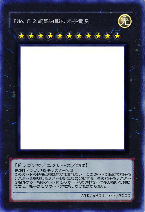 「プライム・フォトン・ドラゴンのFNo.版です。混沌の黒魔術師同様の除外効果とバトルを強制させる効果を持ってます。」(2018-06-05 11:22)