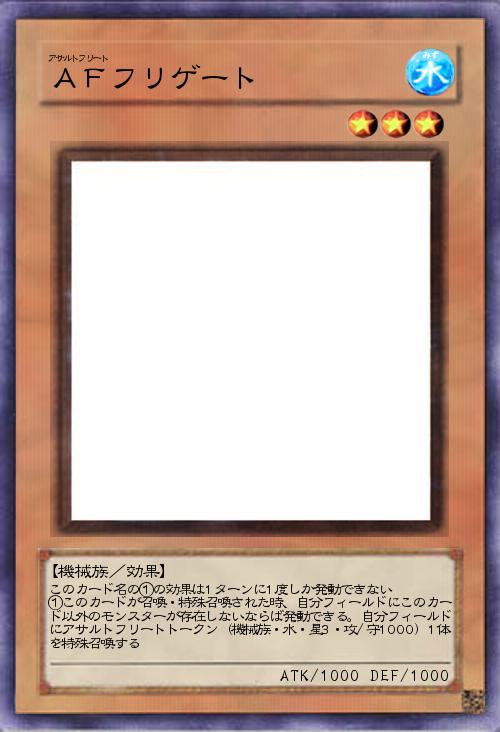 | このカード名の①の効果は1ターンに1度しか発動できない ①このカードが召喚・特殊召喚された時、自分フィールドにこのカード以外のモンスターが存在しないならば発動できる。自分フィールドにアサルトフリートトークン(機械族・水・星3・攻/守1000)1体を特殊召喚する | |||